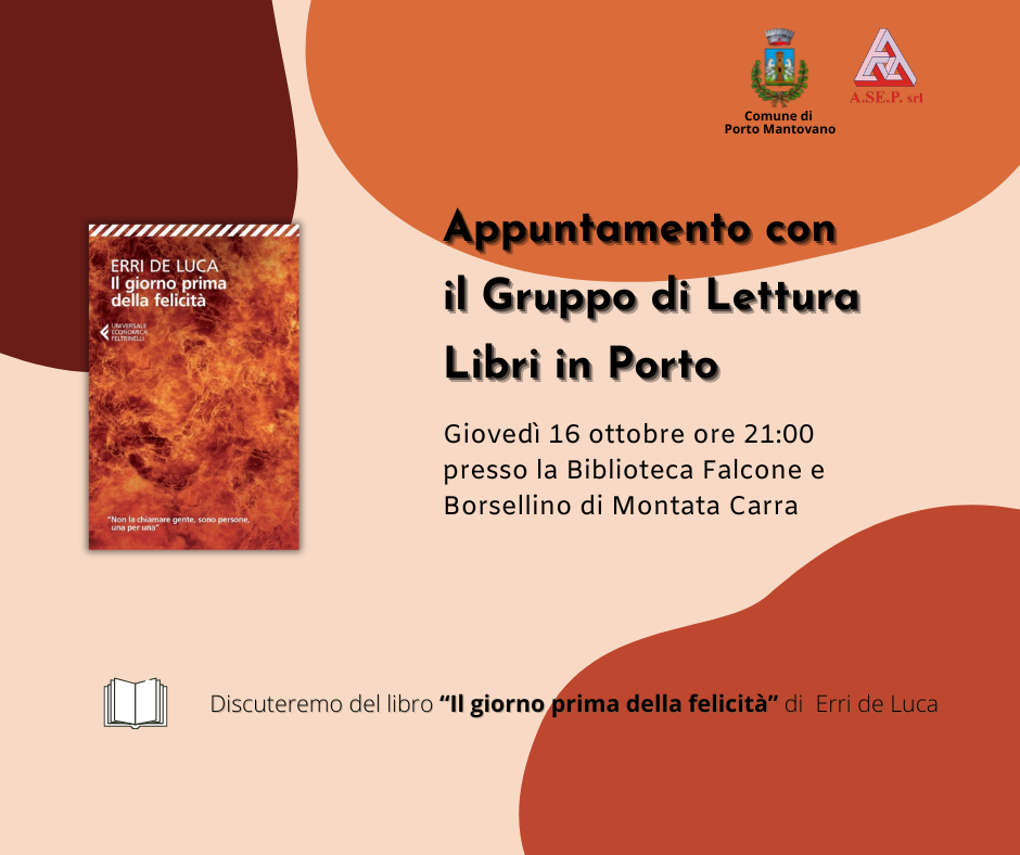 Giovedì 16 ottobre 2025 alle ore 21:00, torna l'appuntamento con il Gruppo di Lettura "Libri in Porto" presso la Biblioteca Comunale "Falcone e Borsellino" di Montata Carra.