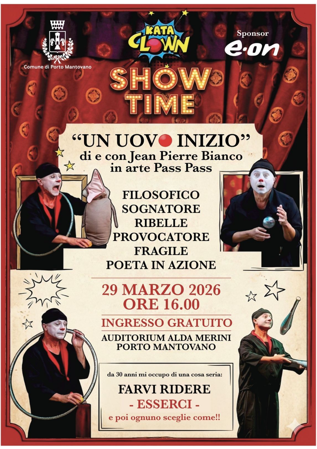 Domenica 29 marzo 2026 presso l’Auditorium Alda Merini, si terrà “Un uovo inizio”, uno spettacolo di teatro-clown, con Jean Pierre Bianco, in arte Pass Pass, che unisce poesia, ironia e profondità: un viaggio tra sogno e realtà con un protagonista filosofico, ribelle, fragile e provocatore, capace di parlare a grandi e piccoli.